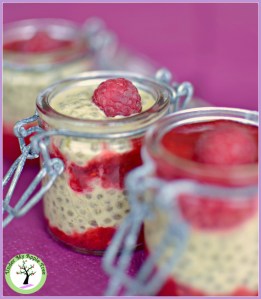 Pudding de chia pistache-framboise Publié par Eleonora le 8 avril 201623 Mai 2016 Recette de pudding de chia à la pistache et de gelée crue de framboise. Sans gluten, sans lactose, végétalien.