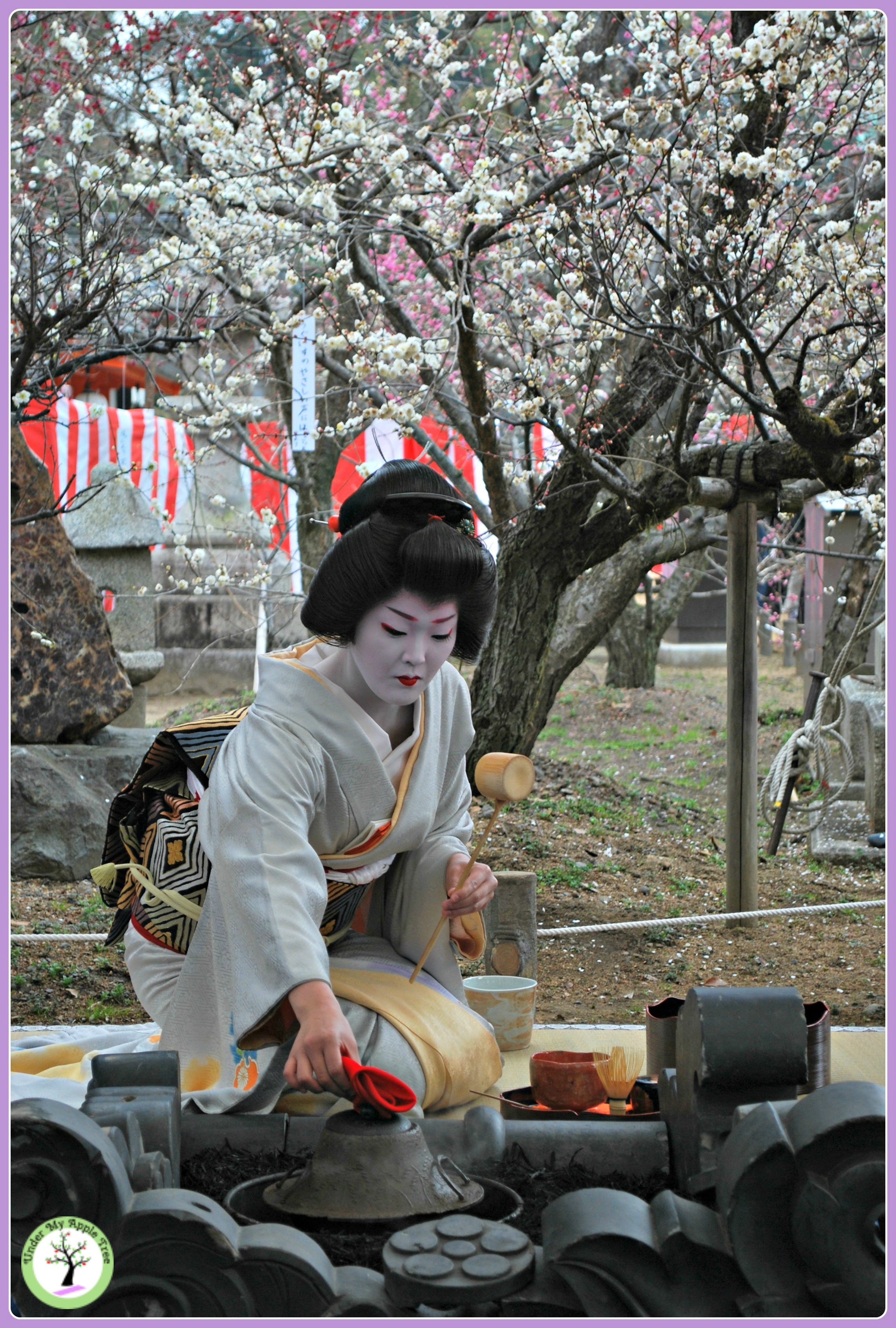 Maiko préparant le thé Publié par Eleonora le 6 mars 201714 avril 2017 Maïko faisant chauffer l’eau au cours de la cérémonie du thé organisée lors du Baika-Sai au Kitano Temangu, Kyoto (2011)