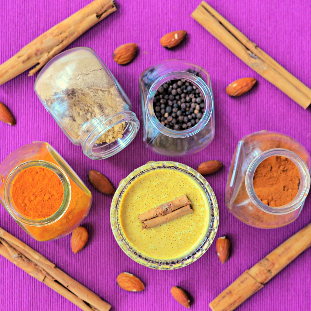 La recette que je partage avec vous aujourd’hui est inspirée d’une recette traditionnelle indienne à base de lait infusé d’épices et sucré. Cette boisson, considérée comme un remède liquide, tire son nom de la jolie couleur jaune qui lui est donnée par le curcuma.